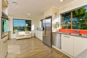 • Large open plan living, dining and kitchen, opening out on a big deck with wide sea views